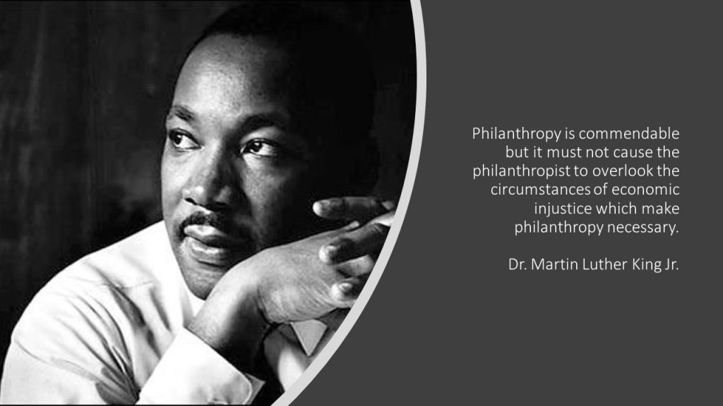 “Philanthropy is commendable but it must not cause the philanthropist to overlook the circumstances of economic injustice which make philanthropy necessary.”