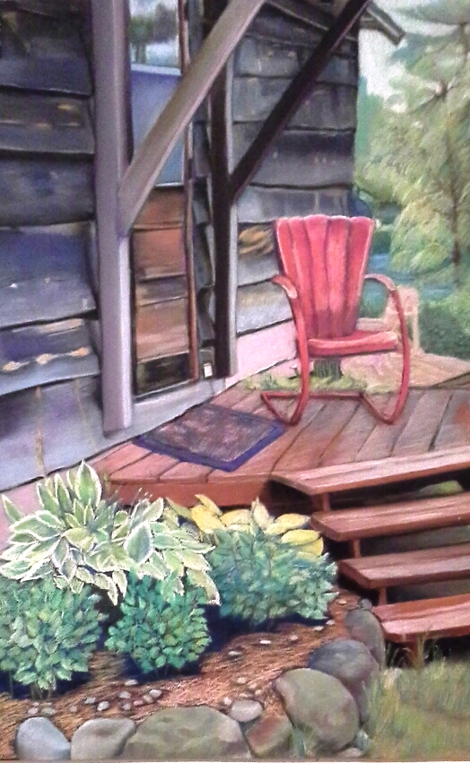 Inspired by the words of a beloved hymn, I interpreted this serene scene in a 24″x36″ painting from the photo entitled ‘A Place to Ponder,’ which was posted on Facebook by a friend.