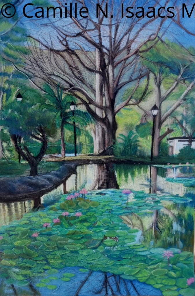 In the early days of spring 2023, my Facebook friend posted a picture she took of the lily pond on the University of the West Indies’ Mona campus,in Jamaica. As soon as I saw the picture, I knew I had to paint it because it reminded of the lyrics of a song I used to sing at school…